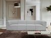 Meet the epitome of style and functionality with this Ollie boucle fabric living room sofa, part of the Ollie modular collection. A contemporary marvel, this sofa features chic and inviting rich boucle fabric upholstery, giving it a sumptuous texture that oozes elegance and luxury. Curved corners add to the visual look of the sofa while maximizing seating comfort while lounging, reading, or entertaining. Pair it with other items in the Ollie collection easily, thanks to an attachment latch underneath.