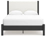 Cadmori Queen Upholstered Panel Bed, Dresser, Mirror and Nightstand