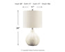 | Details | Made of ceramic with drum hardback fabric shade, Transparent white glaze finish, On/off switch, 1 E26 socket; type A bulb recommended (not included); 60 watts max or LED equivalent; UL listed, Assembly required | |