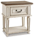 Elevating the art of traditional cottage styling, this nightstand is your dream bedroom retreat realized. Antiqued two-tone aesthetic blends a chipped white with a distressed wood finished top for added charm. Adorned with classic bail pull hardware, the smooth-gliding drawer is crafted with quality dovetail construction for years of satisfaction.