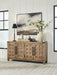 Rustic character with a dash of refinement. Outfitted with stunning hickory veneer and completed with a natural finish, this dining server celebrates the authentic beauty of wood. Its sturdy silhouette lends a substantial, luxurious weight to the look. Spacious cabinets with shelving and drawers neatly tuck away entertaining essentials. Loaded with charm, this server completes your dining space with modern farmhouse flair.