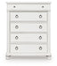 | Details | Made with hardwood solids, veneers and MDF substrates, Rubbed antiqued white finish, Metal hardware with pewter-tone finish, 5 smooth-gliding drawers with fully finished interiors, French/English dovetail construction and heavy-duty ball-bearing side glides, Top drawer felt lined | |
