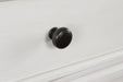 Taking a laid-back approach to casual traditional design, this artfully crafted chest of drawers combines classic elements with a clean modern approach. Its rubbed antiqued white finish exudes a comfy, timeless appeal that's sure to carry you away to a dreamy time and place. Simple round metal knobs and ring pulls on the chest's spacious drawers make just the right statement.