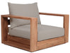 Make this Tulum teak outdoor patio chair the go to spot for relaxing and entertaining guest in your outdoor space. This chair features resilient water resistant fabric making it the perfect spot to rest your feet and enjoy the company of friends or family while you take in the sunrise. Teak construction makes it a tough addition for the patio or porch and gives it the longevity and durability it needs to weather the elements with beautiful ease. Pair it with other items from the Tulum collection for a look that impresses from every angle.