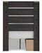 | Details | PCB2108B17: Includes panel headboard/footboard, rails with side storage and roll slats, Made with engineered wood (MDF/particleboard/plywood) and decorative laminate for the right balance of affordability and durability , Charcoal finish over replicated oak grain with authentic touch, Decorative laminate replicates natural or man-made material surfaces with consistent color, pattern and texture, 2 smooth-gliding drawers, 2 storage cubbies, Bed does not require additional foundation/box spring; accommodates most zero clearance adjustable bases with the addition of a bunkie board, Mattress available, sold separately, Minor assembly required, PCB2108B1: Includes dresser and mirror, Made with engineered wood (MDF/particleboard/plywood) and decorative laminate for the right balance of affordability and durability , Charcoal finish over replicated oak grain with authentic touch, Decorative laminate replicates natural or man-made material surfaces with consistent color, pattern and texture, Large-scale dark colored handles, 6 smooth-gliding drawers, Drawer interiors are lined with a faux linen laminate for a clean, finished look , Mirror attaches to back of dresser; can also be mounted on wall horizontally or vertically, Safety is a top priority, clothing storage units are designed to meet the most current standard for stability, ASTM F 2057 (ASTM International), Drawers extend out to accommodate maximum access to drawer interior while maintaining safety, Minor assembly required, PCB2108-92: Made with engineered wood (MDF/particleboard/plywood) and decorative laminate for the right balance of affordability and durability, Charcoal finish over replicated oak grain with authentic touch, Decorative laminate replicates natural or man-made material surfaces with consistent color, pattern and texture, Large-scale dark colored handles, 2 smooth-gliding drawers, Drawer interiors are lined with a faux linen laminate for a clean, finished look, 2 slim-profile USB-C charging ports, Power cord included; UL Listed, Minor assembly required, | |