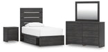 Hollivern Twin Panel Storage Bed, Dresser, Mirror and Nightstand