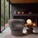 Create instant visual interest and add a comfy seating option to any space with this Valentina linen textured fabric swivel accent chair. The stacked back design is fun and modern, giving your room an upbeat (and stylish) vibe. This chair features mainly fabric with white weave details, thanks to its rich linen textured fabric upholstery. Deep channel tufting adds to its overall comforting look and feel in your living room, office, bedroom, or elsewhere.