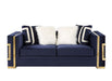 Virrux - Loveseat With 4 Pillows - Blue Velvet & Gold