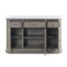 Serving a practical purpose while maintaining a classic design, the server features a gracefully carved wooden base in a weathered oak finish for rich textures and vintage beauty. White artificial marble top provides a clean and perfect counter space that is spacious enough to allow you to serve food or display delicate dishware. Three drawers under tabletop give your easy-access storage spaces for items often used, with two closed doors and a central glass door on the bottom for extra display and storage spaces.