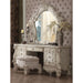 The Versailles mirror gives your bedroom all the grandeur of royal style. This mirror has a substantial silhouette and is adorned with such old-world details, carved medallions, and shaped moldings. This mirror is the perfect addition to any bedroom.