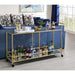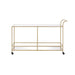 Designed to add luxurious and sophisticated touch to your dining area, this Kenda serving cart is a great option for keeping your favorite bottles in easy reach. The top shelf is crafted with 5mm tempered clear glass and the bottom shelf is mirrored. The simple straight lines design proves exceptional display capacity. With the frame finished in gold coating, it will round out your home with a glamorous touch.
