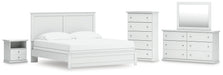 Bostwick Shoals King Panel Bed with Mirrored Dresser, Chest and Nightstand