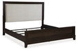 Neymorton King Upholstered Panel Bed with Mirrored Dresser
