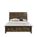 The Blue Ridge Bed by New Classic Furniture embodies a marriage of sustainability and timeless design. Crafted from reclaimed solid wood sourced from diverse origins, this bed stands as an eco-friendly marvel, contributing to the responsible use of natural resources. The naturally timeworn appearance, marked by nail and bolt holes, bug holes, water and mineral staining, checking, and open knots, tells a story unique to each piece. The strength of reclaimed wood, seasoned through years of service, is reinforced with a finger joining technique, allowing the creation of the hallmark long planks of the Blue Ridge. The multi-step finish, featuring a rustic with undertones and charcoal glazing, enhances the heavily distressed look. The gracefully curved headboard offers pillow propping ease for bedtime reading, while the sturdy 400-pound capacity footboard seating bench provides a practical spot for daily routines. Compliant with safety standards and backed by a 1-year limited warranty, this bed offers rustic comfort and peace of mind, reflecting a commitment to both style and safety.