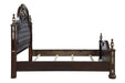 The Royal Classics Maximus Upholstered Bed in Madeira Brown is a masterpiece of heirloom quality, meticulously crafted from solid poplar and premium birch veneers for long-lasting beauty and durability. Its rich, multi-step finish highlights the natural wood grain, while delicately burnished gold tipping accents the intricate carvings, capturing the essence of 18th-century Rococo style. The plush, button-tufted headboard, wrapped in rich vegan leather, offers a luxurious and regal focal point for your master bedroom. This set includes a headboard, footboard, side rails, and a slat kit, making it a complete package for timeless elegance and sophisticated comfort.