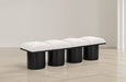 Bring valuable seating and remarkable style to your space with this Pavilion Boucle Fabric Bench, an exquisite balance of style and usability for the entryway, bedroom, and beyond. Crafted from oak veneer with a black finish, this bench has a 4-inch-thick seat cushion that's channel-tufted for a touch of luxury. The bench's columnar bases add a dash of Art Deco design, making it a captivating focal point in any room.