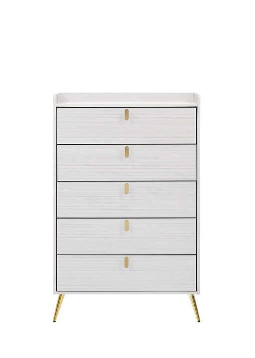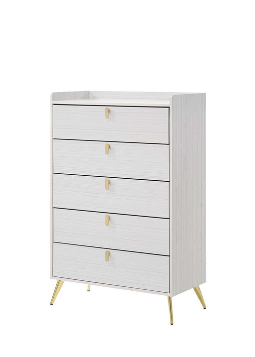 ACMEClassic design with touches of modern aspects makes this Haiden Chest ideal for any bedroom. The piece offers a rectangular table top and five stor...