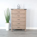 This chest features clean lines and a mixed-material look that combines modern style with industrial flair. Its frame is made from mahogany solids and veneers with metal corner accents and industrial style hardware.With five large drawers, you will have plenty of room for all your clothes.