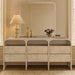 Arched edges, bold geometry, and rich burl wood grain give the Giada mirror its art deco edge. Layers of oak and ash veneer create a striking visual texture that is a statement. Built from a mix of solid wood and MDF, it delivers durability wrapped in undeniable style.