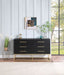 Inject bold, modern styling into your bedroom with this Maxine dresser. The dresser's contemporary design is nothing short of stunning, with unassuming lines and eye-grabbing hardware. A rich finish is modish and up-to-the-minute, while the brushed metal legs and drawer handles give this unit added flair. A metal base raises the dresser from the floor for a noticeably upscale vibe. Fill this dresser's drawers with essentials for keeping your bedroom space clean and neat.