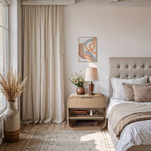 Meridian FurnitureWith its rich natural finish and breezy cane accents, the Windsor natural solid wood nightstand adds an instant sense of calm to any space. Solid w...