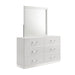 The Europa Mirror in white is a perfect blend of modern design and quality craftsmanship. This mirror features a sleek, sophisticated look with a bright white finish that adds to its glimmering appeal. Made from eco-friendly manufactured woods, it is assembled with durability in mind, and the surfaces are finished with a glossy white topcoat. The upscale design includes a low-distortion mirror encased in a tapered frame, adding a modern flair to any room. Choose the Europa Mirror to enhance your space with a touch of contemporary elegance and high-quality construction.
