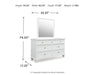 | Details | B680B22: Includes panel headboard, storage footboard, rails and roll slats , Made with hardwood solids and MDF substrate, Side rails feature laminated solid hardwood slat support rails (or LVL) with glued and screwed blocking for added strength , White painted finish, Round metal drawer knobs with satin nickel-tone finish, Tapered feet, 2 smooth-gliding drawers in footboard , Bed does not require additional foundation/box spring; accommodates most zero clearance adjustable bases with the addition of a bunkie board , Mattress available, sold separately, Assembly required, B680B1: Includes dresser and mirror, Made with hardwood solids and MDF substrate, White painted finish, 7 smooth-gliding drawers with dovetail construction and ball-bearing side glides, Round metal drawer knobs with satin nickel-tone finish, Tapered feet, Mirror attaches to back of dresser, Assembly required, | |