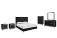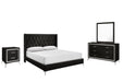 The Huxley Bedroom Set is a perfect blend of contemporary glam and durable construction. Each piece is crafted from manufactured woods and eco-friendly decorative laminate for long-lasting use. The bed features a crystal button-tufted headboard with silver studded trim, offering a touch of luxury and comfort, while the rich finish provides a sleek and sophisticated look that is both timeless and modern. The bold highlights the metallic accents and smooth surfaces, creating a chic and polished aesthetic. The drawers are designed with quality in mind, rolling smoothly on center glides and constructed with English dovetail joinery for durability. The dresser and chest offer ample storage with chic, crystal-studded drawer pulls for easy access. Invest in the Huxley Bedroom Set for a functional and fashionable addition to your home.