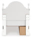 | Details | PCB1819B9: Includes upholstered panel headboard, panel footboard, roll slats and side storage with rails, Made with engineered wood (MDF/particleboard/plywood) and decorative laminate for the right balance of affordability and durability , Matte white finish, Decorative laminate replicates natural or man-made material surfaces with consistent color, pattern and texture , Polyester upholstery, Crystal drawer knobs; acrylic ball tops, 2 smooth-gliding drawers; drawer interiors are lined with a faux linen laminate for a clean, finished look, Open cubbies accommodate any 10.5" W x 10.5" D x 11" H storage bin (not included), Pink, purple and white LED lighting options; touch button control, Power cord included; UL Listed, Bed does not require additional foundation/box spring; accommodates most zero clearance adjustable bases with the addition of a bunkie board, Mattress available, sold separately, Minor assembly required, PCB1819B2: Includes dresser and mirror, Made with engineered wood (MDF/particleboard/plywood) and decorative laminate for the right balance of affordability and durability , Matte white finish, Decorative laminate replicates natural or man-made material surfaces with consistent color, pattern and texture , Crystal drawer knobs, 6 smooth-gliding drawers, Drawer interiors are lined with a faux linen laminate for a clean, finished look, Safety is a top priority, clothing storage units are designed to meet the most current standards for stability, ATM F 2057 (ASTM International), Drawers extend out to accommodate maximum access to drawer interior while maintaining safety, Mirror can be mounted on wall vertically , Minor assembly required, | |