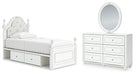 Kozlani Twin Upholstered Panel Storage Bed, Dresser and Mirror