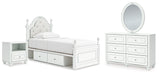 Kozlani Twin Upholstered Panel Storage Bed, Dresser, Mirror and Nightstand
