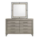 The Lennox Mirror in Gray is a stunning addition to any modern bedroom, blending elegance and functionality with ease. Crafted with premium engineered woods and an eco-friendly gray ash laminate, it features a sleek, contemporary design that is both stylish and durable. Lustrous metallic trim accents enhance the light gray finish, adding a touch of sophistication to create a refined ambiance. Encased in a sturdy wood frame, the clear, low-distortion glass offers a crystal-clear reflection, bringing brilliance and realism to your space. The Lennox Mirror is the perfect finishing touch for a contemporary and polished room.