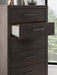 Details Made with engineered wood (MDF/particleboard/plywood) and decorative laminate for the right balance of affordability and durability, Dark charcoal finish over replicated oak grain, Decorative laminate replicates natural or man-made material surfaces with consistent color, pattern and texture, Large handles with black finish, 5 smooth-gliding drawers, Framed front and pilasters, Safety is a top priority, clothing storage units are designed to meet the most current standard for stability, ASTM F 2057 (ASTM International), Drawers extend out to accommodate maximum access to drawer interior while maintaining safety, Minor assembly required