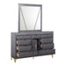 The Symmetry Lighted Mirror in Charcoal Gray blends luxury and modern function, making a bold statement in any space. Crafted from premium woods with a gray marbled laminate, it exudes timeless elegance. The sleek frame encases a crystal-clear, low-distortion mirror for enhanced clarity and refined style. Dual accent lighting strips illuminate the mirror, adding brilliance and glamour. More than just practical, this mirror is a luxurious piece that transforms any room into a sophisticated haven.