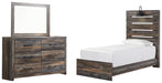 | Details | B211B1: Made of engineered wood (MDF/particleboard) and decorative laminate, Brown rustic finish with burnt orange and teal accents in a replicated wood grain with authentic touch, 6 smooth-gliding drawers, Drawers lined with faux linen laminate, Dark-tone industrial hardware, Mirror attaches to back of dresser, Assembly required, Includes tipover restraint device, B211B2: Includes headboard, footboard and rails, Made of engineered wood (MDF/particleboard) and decorative laminate, Brown rustic finish with burnt orange and teal accents in a replicated wood grain with authentic touch, Decorative sconce LED light, runs on 3AA batteries, 2 USB charging ports, Power cord included; UL-listed, Mattress and foundation/box spring available, sold separately, Assembly required, Bed is compatible with an adjustable base, | |