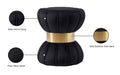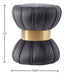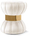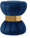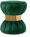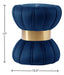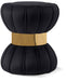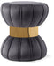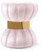 Add modern sophistication to your living space with this chic velvet Vino ottoman stool. Plush velvet curves are bound by a stainless steel band in its center, creating an hourglass shape that is edgy and complements your contemporary home decor.