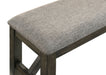 The Gulliver Upholstered Dining Bench in rustic brown offers a combination of quality construction and timeless design, making it a versatile addition to your home. This bench is crafted from durable solid rubberwood and acacia wood veneers, ensuring long-lasting stability. The multi-step rustic brown finish enhances the intricate patterns of the natural wood grains, with subtle notes of gray and charcoal brown adding a touch of elegance. The design merges clean lines with the warmth of distressed wood, featuring robust legs and sturdy base supports that embody modern farmhouse charm. The easy-care polyester and cotton blend gray fabric wraps the resilient foam seat cushion, providing a cozy seating experience. Ideal for extra dining room seating or as a stylish entryway bench, the Gulliver Upholstered Dining Bench seamlessly blends contemporary sophistication with traditional rustic elements.