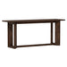 Sleek contemporary lines with intriguingly angled legs may catch your attention but the details of the Ronan collection will draw you in. Mango veneers applied over hardwood solids are polished off in a rich brown finish that flaunts the deep natural variations of the wood grain. Gently rounded edges pair with soft, textured fabric on the fully upholstered chairs and stools with tufting and exposed back frame details. In dining and gathering heights and a matching server, the Ronan collection proves that elevated and sophisticated can also be warmly inviting.