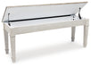 This bench invites you to strike a note for small space living. An inspired choice for coastal chic or modern farmhouse settings, this piano style bench with under seat storage sports a grayish white finish with rub through effect for timeworn appeal.