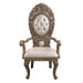 Ornate scrollwork and endless details the Constantine collection takes inspiration from the Baroque era to make up this dining set. The bronze finish creates a regal look to the set. The table sits on highly detailed wooden legs that are not only beautiful but sturdy. The chairs are visually striking on their own with ornate carvings and upholstered in bone PU that feature button tufted backrests.