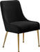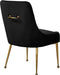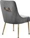 Revamp your dining space with this Owen Dining Chair. Posh velvet upholstery covers every inch of this chair, giving it a svelte look that's just the thing for modern decor. The polished legs have a ball design for added visual oomph, and a matching handle on the back adds an elegant detail while also providing an easy way to slide the chairs in and out from your choice of table.