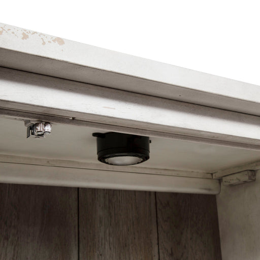 Liberty FurnitureFeatures planked back panel, two wood framed adjustable shelves, heavily craved bonnet top and LED touching lighting. Cannot stand alone. Pair with...