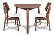 The Oscar Mid-Century Modern Wood 3-Piece Dining Set seamlessly combines timeless design with practical functionality. This elegant set, including a corner dining table and two dining chairs, captures the essence of Mid-Century Modern style with its clean lines and organic curves. Expertly crafted from solid Rubberwood and Walnut Veneers, it ensures both durability and long-lasting beauty, enhanced by a clear top coat that accentuates the natural grain. The dining chairs are reinforced with base stretchers for added stability and feature foam seat cushions wrapped in natural 100% polyester fabric for superior comfort. Perfectly suited for small spaces, this sophisticated set enhances kitchen nooks, compact dining areas, or serves as a refined accent piece in entry halls and living rooms.