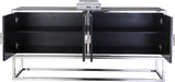 Keep everything you need to serve delicious meals at hand in the Marbella Sideboard Buffet from Meridian Furniture. This handsome yet modish buffet offers a sleek contemporary look for your modern dining room with low-profile hardware and a boxy shape. The stainless steel base adds to its durability, while the mirrored design ensures that it keeps pace with up-to-the-minute decor. Store cookware, serving ware and more inside two double door sections to keep your space tidy and neat.
