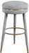Liven up your breakfast nook with this Coral grey boucle fabric bar stool from Meridian Furniture. Its rich grey boucle fabric upholstery offers soft texture while you sit, and its swivel function allows you to twist and turn while you sit at the counter. This bar-height chair adds lift to your day while you swivel happily at your breakfast bar. It features brushed gold accents, giving it a contemporary design that complements any modern living space.