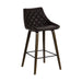 lean lines and neutral colors make the chic Armen Living Dani barstools a must-have addition to your kitchen or bar. The stools' round back features just the right amount of curve that plays against the elegant wood legs. The lovely four leg base is the perfect accompaniment to the soft upholstery of the seat. Placed at your kitchen counter, game table, or around a counter height table, these Armen Living Dani barstools are a trendy style statement you will love having in your home. The Armen Living Dani barstools are available in your choice of velvet upholstery with a brushed wooden frame or faux leather upholstery with a walnut glazed wooden frame.