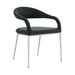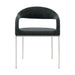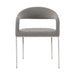 Strike a stylish impact with the Diaz Morgan Dining Set by Armen Living. This set includes Diaz Contemporary Round Glass Dining Table and Morgan Upholstered Dining Chairs in Fabric and Metal. The refined geometry and elegant details lend a luxe and sophisticated aesthetic to this dining set. Our dining table features a 48" round, glass top that rests upon a sleek, metal base. The bold curves and airy design are accentuated by the brushed stainless steel or matte black iron finish. This dining table serves as a smart and chic complement to our Morgan dining chairs. The floating, beautifully curved back and seamlessly flowing arms bring notes of opulence to these dining chairs. Its back, armrest, and seat are fully upholstered to offer hours of comfort. It is covered in performance fabric to provide easy care and maintenance. Altogether, this dining set lends a sleek and stylish upgrade to your kitchen, dining room, or living space. It evokes luxury and comfort for your intimate dinners and family gatherings. Crafted from premium materials, our dining set ensures durability and quality for years to come. The Diaz Morgan Round Glass Dining Table Set is available in matching finishes and a variety of colors, or sold separately to achieve any look you desire.