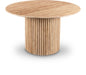 Add a refined look to your room with this handcrafted Genoa dining table, a stunning masterpiece that marries elegance and practicality. Crafted from genuine travertine, each table is a unique work of art, featuring a beige travertine top with intricate white veining. The fluted travertine base adds a touch of art deco design, making it a statement piece in any room and adding to its heirloom-quality design.