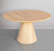Give your home a rustic look with this Linette white oak dining table. Crafted from solid white oak wood, this table is sturdy enough to serve your dining area for years to come. A cerused brushed white oak finish gives the table a natural look perfect for any down-home living space. Its tapered base provides an elegant and sturdy foundation for its round tabletop, ensuring there is lots of leg space underneath the table.