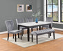 Elevate your dining space with this luxurious and modern counter height dining group, designed to bring elegance and sophistication to every meal. The stunning faux-marble tabletop offers a sleek and polished look, beautifully complemented by the bold frame for a striking contrast. The plush, velvet-upholstered chairs and bench feature chic vertical channel tufting, providing both comfort and contemporary flair. Perfect for hosting dinner parties or enjoying everyday meals, this set seamlessly blends style and functionality. With its refined aesthetic and durable craftsmanship, it’s the perfect addition to any modern home looking for a touch of glamour.